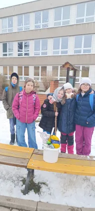Již druhým rokem je naše škola spojená v rámci spolupráce se Skautským institutem. V lokalitě Plzeň - Lobzy jsme převzali patronát nad částí Lobezského parku. V průběhu zimy jsme byli několikrát přikrmovat ptáky a sbírali jsme odpadky. V průběhu jarních měsíců se chystáme provést údržbu křovin. Za odměnu jsme obdrželi spoustu hodnotných dárků jako jsou kvalitní dalekohledy, klíče pro určování živočichů a rostlin, ptačí budku a také krmítko i s krmivem pro veverky. Ptačí budku jsme při naší poslední schůzce v dílnách složili a zajistili tak, že se umíme ohánět i hřebíky, metrem a kladívkem :)