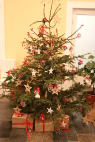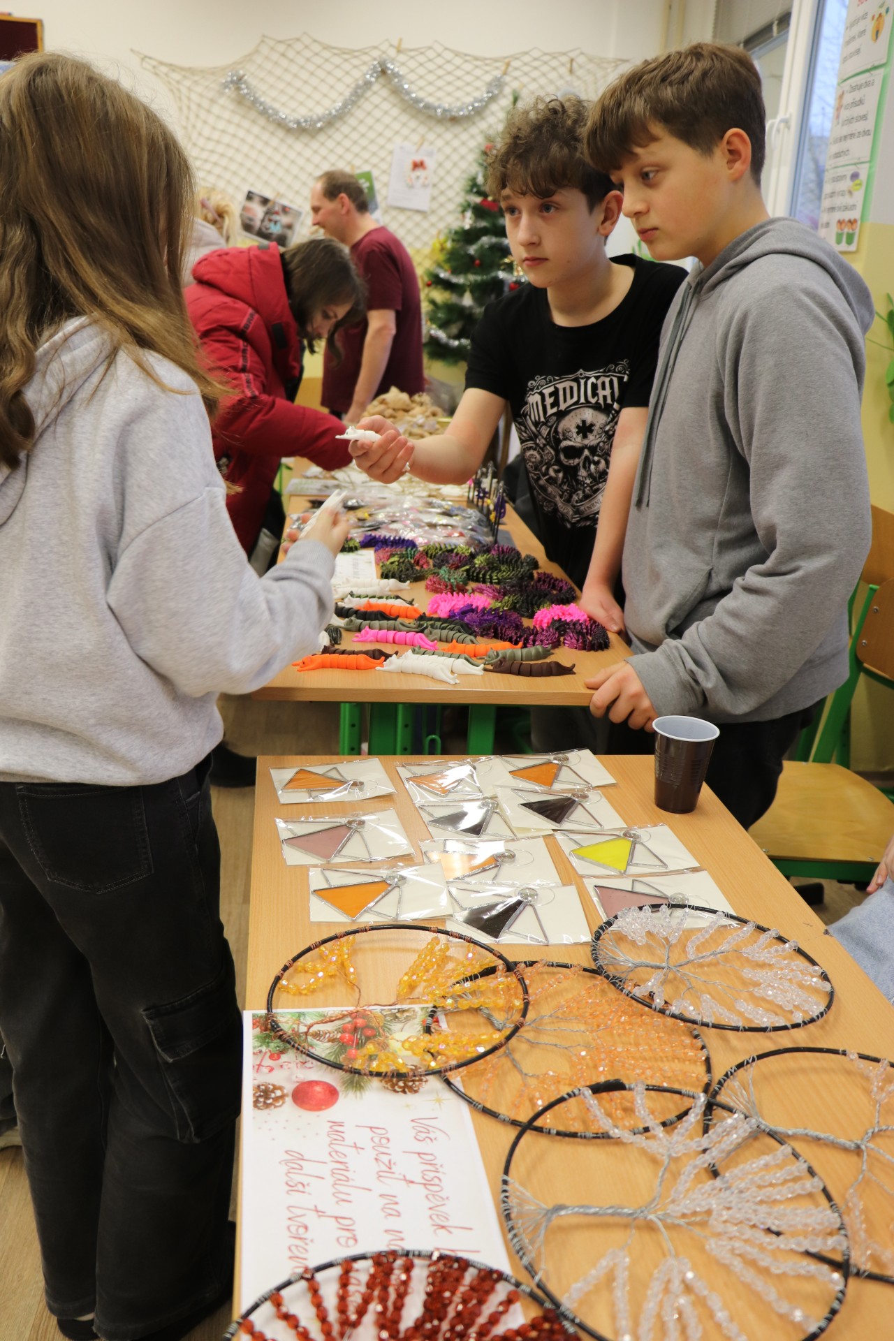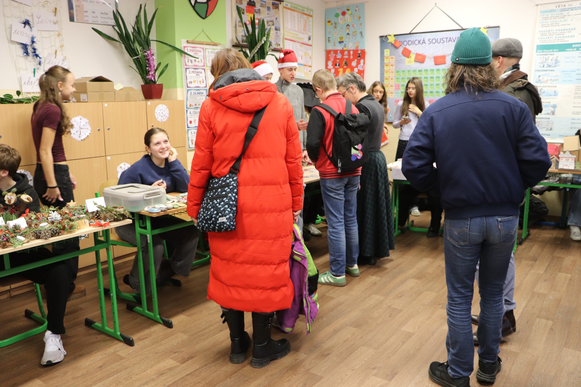 Rádi bychom poděkovali všem přátelům školy za skvělou atmosféru na vánočním jarmarku. Opět jsme viděli známé tváře absolventů, popřáli si vzájemně s žáky a rodiči klidné a šťastné svátky. Letos jsme pro návštěvníky připravili novinku, žáci pod vedením učitelů vytvořili s pomocí umělé inteligence vánoční videa, která jsme promítali na stěnu školní budovy. Napsat správný prompt není věc jednoduchá, naši žáci jsou však na novou éru dobře připraveni. Hlavní roli ale o Vánocích hrají tradice a lidská vřelost. Žáci prvního stupně předvedli rodičům vystoupení, které mělo veliký úspěch. Po něm se pak mohli všichni hosté projít po chodbě školy a obdivovat výrobky, které děti samy vytvořily na vánočních dílnách, mnoho z nich si pak odnesli domů jako dárečky pro nejbližší nebo dekorace. Hlad zahnal štrůdl a chlebíčky, žízeň horký nápoj. S láskou je připravily paní kuchařky. Je uklidňující a hřejivé vidět tolik úsměvů uprostřed zimy, kdy jsou noci dlouhé. Přejeme ještě jednou všem krásné Vánoce plné pohody a štěstí v rodinném kruhu.